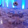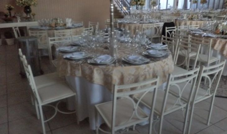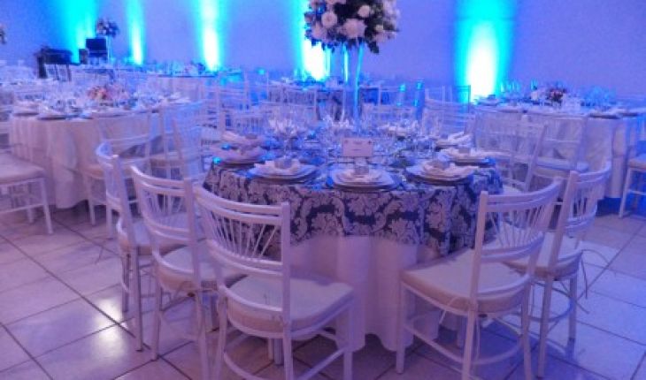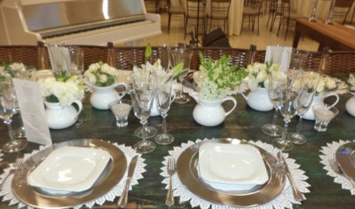 MESA DE PATINA COM COPOS AZUIS