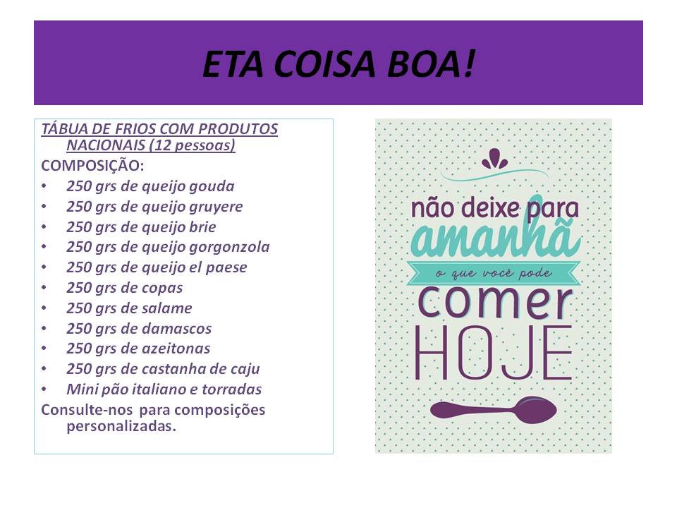 Estamos fazendo TÁBUA DE FRIOS sob encomenda.