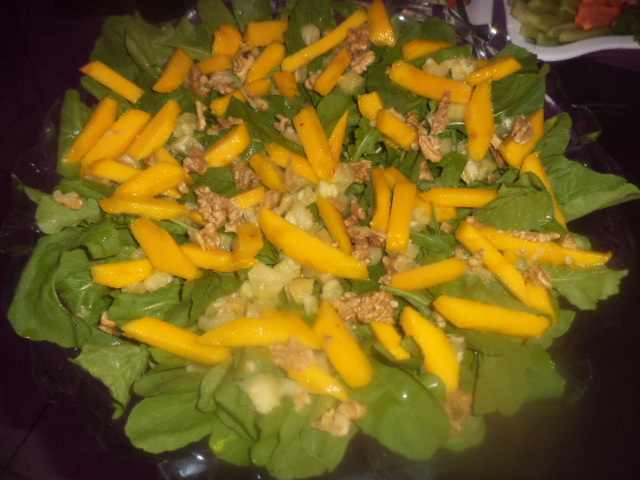 Salada de folhas com Presunto Cru, manga e molho de Roquefort