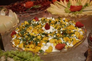 Salada Argentina (agrião, melão picado, presunto e molho com maionese, creme