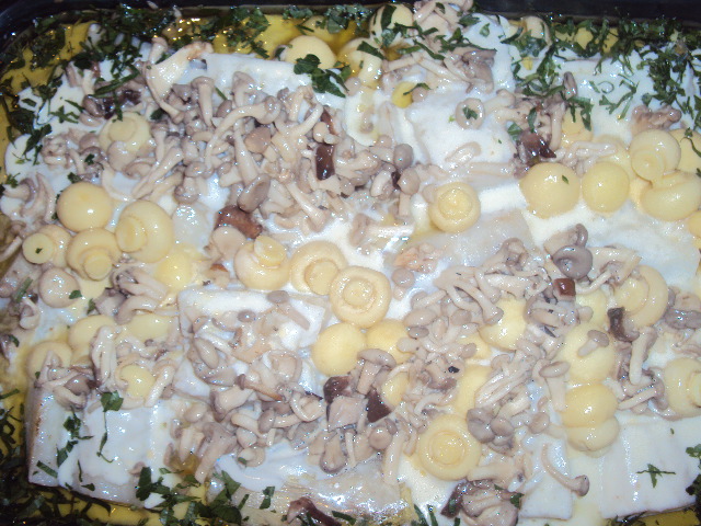 champignons, ervilhas, vinho branco e